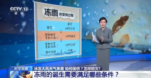 中国气象局高级工程师 信欣:这次冻雨的影响范围确实比较广,持续时间也比较长。河南、湖北、湖南、贵州等多地均陆续监测到冻雨。形成冻雨有个关键要素就是暖冷层相互作用。未来三天,贵州、湖南、广西局地仍会有冻雨出现。