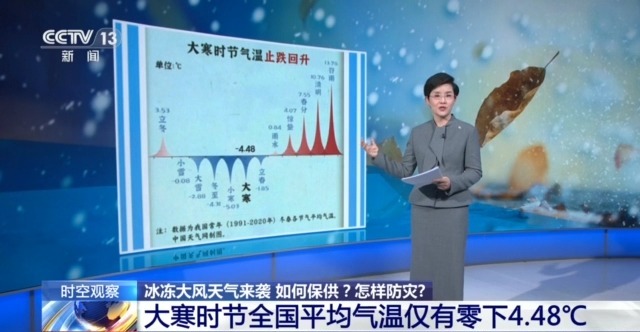 1月20日进入大寒节气,也是二十四节气中的最后一个节气。这个时节,我国大部地区仍处于冬季,寒潮频繁南下,北方天寒地冻,南方雨雪增多,多地气温将在大寒时节迎来全年最冷的时段。1月18日中央气象台时隔两年再发冰冻黄色预警,截至20日已连发三天。20日傍晚,中央气象台继续发布冰冻黄色预警和大风蓝色预警。冰冻大风天气来袭,各地如何保障市场供应?怎样防范灾害影响?
